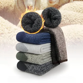 5 Pairs Men’s Merino Wool Thermal Hiking Socks – Thick Warm Comfort