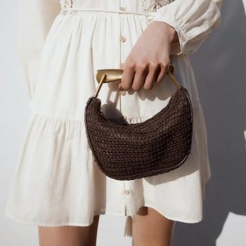 Half-Moon Woven Straw Shoulder & Crossbody Bag