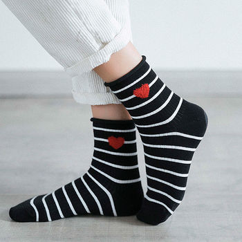 Striped Love Heart Cotton Women Socks – Soft & Cozy Socks