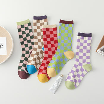 Colorful Argyle Striped Cotton Socks for Women