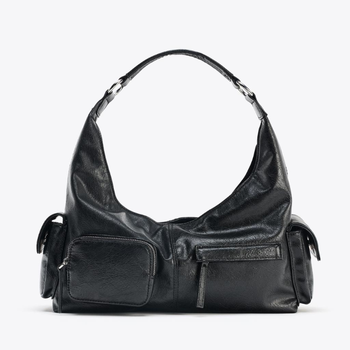 Women’s Crackled Effect Punk Style Shoulder Hobo Bag – Motorcycle-Inspired Luxury