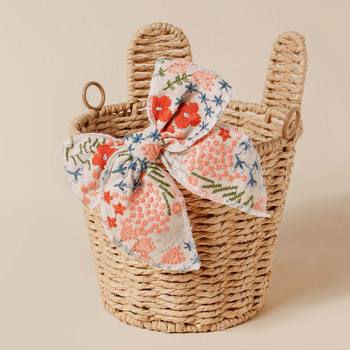 Floral Embroidered Cotton Bow Hair Clip for Baby Girls