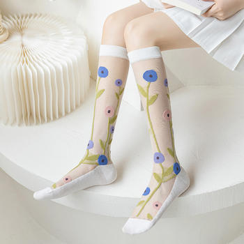 Harajuku Floral Crystal Silk Socks – Retro Transparent Summer Style