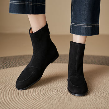 Women’s Suede Chelsea Ankle Boots with Zipper, Flat Heel