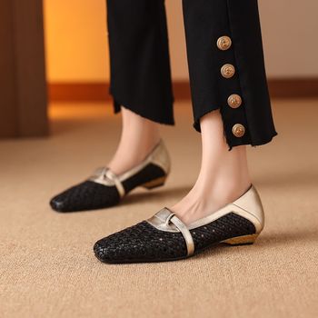 Square Toe Low Heel Woven Fabric Pumps for Women