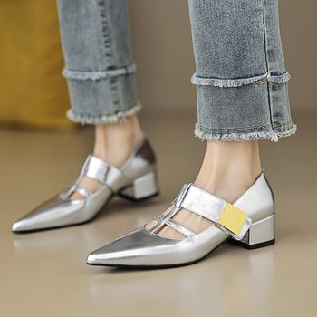 Elegant Pointed Toe Leather Mary Jane Pumps with Slim Heel