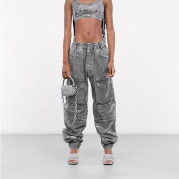 Diesel Women’s Grey Sequinned Denim Cargo Pants