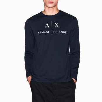 Armani Exchange Men’s Navy Long Sleeve T-shirt with Logo Prints