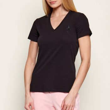 Armani Exchange Women’s Black V-Neck Cotton T-Shirt – Spring/Summer Collection