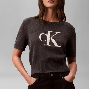 Calvin Klein Jeans Women’s Grey Monologo Cropped Jumper