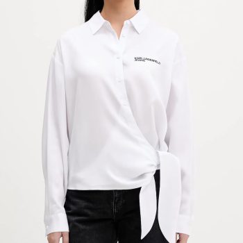 Karl Lagerfeld Women’s White Lyocell Shirt – Classic Round Neck & Button Closure