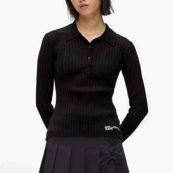 Karl Lagerfeld Jeans Women’s Rib-Knit Long-Sleeved Polo Shirt – Black