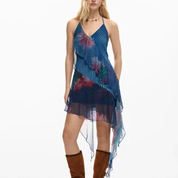 Desigual Women’s Multicolor Wrap Dress with Denim Collar