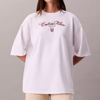 Calvin Klein Jeans Women’s Script Logo Relaxed White T-Shirt