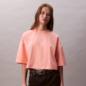 Calvin Klein Jeans Boxy Cropped Logo T-Shirt in Powder Orange