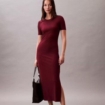 Calvin Klein Jeans Modal Rib Midi Dress in Deep Rouge