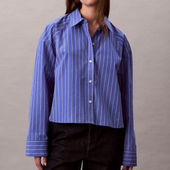 Calvin Klein Jeans Women’s Stripe Cropped Boxy Button-Down Shirt