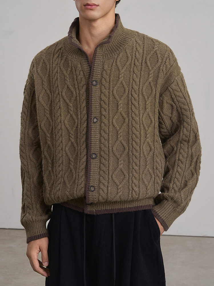 This men’s stand collar knit sweater jacket blends vintage charm with modern comfort. Designed for daily wear in cold weather, it gives you the polished look of a coat with the soft feel of a cardigan. Whether you’re heading to work, going out with friends, or just running errands, this piece adds instant style without feeling heavy or bulky. The clean, solid color and twist knit texture make it easy to pair with jeans, chinos, or layered over a shirt.