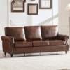 Mid-Century Faux Leather Sofa with Rolled Arms & Nailhead Trim – 3-Seater Couch