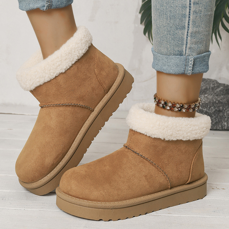 Step into warmth, comfort, and effortless winter style with these faux suede flat snow boots. Designed for everyday wear, these ankle boots blend a soft, plush feel with a chunky platform sole that adds comfort without extra height. The clean, solid design makes them easy to pair with jeans, leggings, or winter dresses, while the cozy interior keeps your feet warm on chilly days.