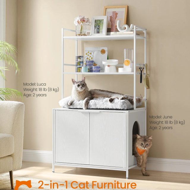 Transform your cat’s litter box area into a sleek and tidy space with this Cat Litter Box Enclosure. Designed to seamlessly blend with your home décor, this stylish enclosure hides the litter box out of sight while offering additional storage for your cat’s essentials. Whether you have a large cat breed or just want to keep things neat, this 2-in-1 piece of furniture is the perfect solution for both function and style.