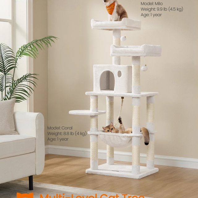 Give your cat a place they can truly call their own. This 56-inch multi-level cat tree is designed for indoor cats who love to climb, lounge, scratch, and observe their surroundings from above. With a smart vertical layout and multiple resting spots, it turns everyday living space into a fun and comforting playground. Whether your cat is playful, shy, young, or senior, this cat tower offers a perfect balance of activity and relaxation.