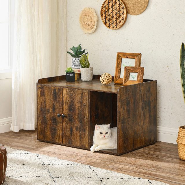 Say goodbye to unsightly litter boxes and hello to a sleek, modern solution that blends effortlessly into your home. This chic litter box enclosure turns your cat’s washroom into a stylish, hidden space that complements your home decor. With its rustic finish, it’s a perfect match for any interior style, offering both practicality and aesthetic appeal. Whether placed in the living room, bathroom, or hallway, this clever piece of furniture provides a functional solution without compromising on style.