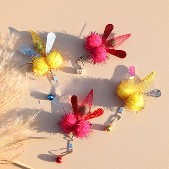 Colorful Goldfish & Insect Cat Teaser Toy Set with Feathers