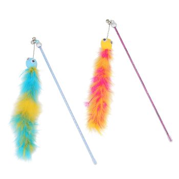 2-Pack Caterpillar Feather Cat Teaser Wand Toy for Playful Indoor Cats