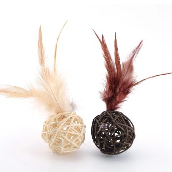 Hand-Woven Rattan Feather Ball Toy for Cats