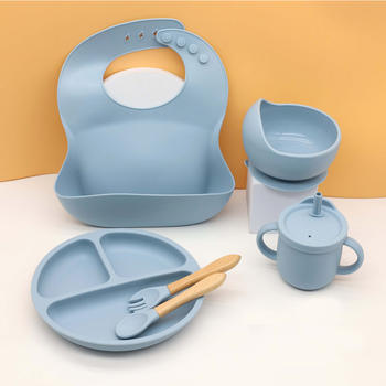 6-Piece Silicone Baby Dinnerware Set with Suction Bowl, Bib & Cups
