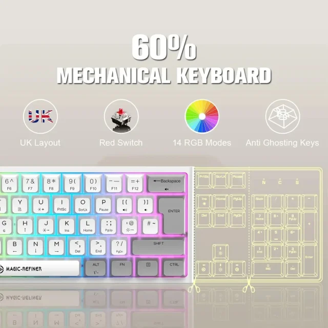 Take your gaming to the next level with this 60% Compact Mechanical Gaming Keyboard. Designed for gamers and typists who crave speed, precision, and style, this keyboard combines a minimalist 61-key layout with powerful performance. Its plug-and-play Type-C connection and lightweight build make it perfect for both desk setups and on-the-go use. Enjoy more space for your mouse and faster reactions in every match.
