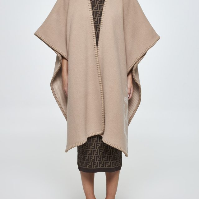 The Fendi Beige Wool and Cashmere Poncho is the epitome of luxury and functionality. Whether you’re seeking something stylish for cooler evenings or simply want to add an extra layer of warmth to your outfit, this poncho is perfect for all occasions. The blend of wool and cashmere provides just the right amount of softness and insulation, while the modern design elements ensure you stand out in style.