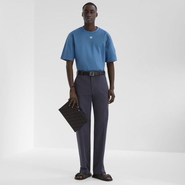 What truly sets these pants apart is the palladium-finish metal micro FF logo at the waist. This signature detail offers a nod to Fendi’s iconic style, adding a touch of luxury without overpowering the clean, modern look. Whether you’re attending a formal event or dressing up for a night out, these pants bring a polished finish to any outfit.