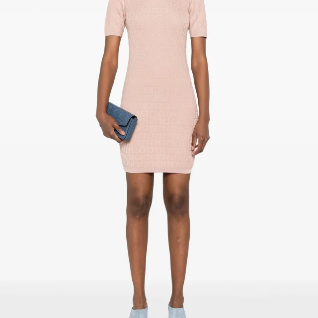 FENDI Monogram Mini Dress – Pink Round Neck Short Sleeve Cotton-Viscose Blend
