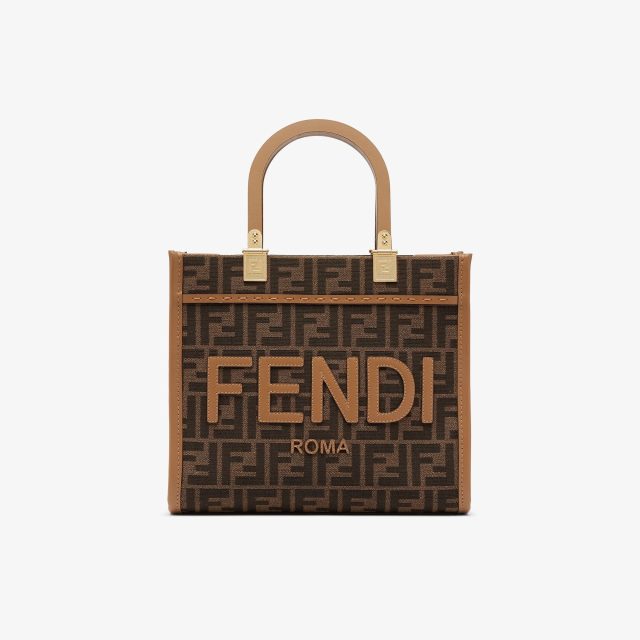 Upgrade your collection with the Fendi Sunshine Small Brown FF Jacquard Fabric Bag. Shop now and make a statement wherever you go!