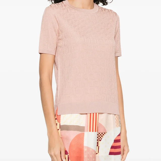 The FENDIFF Jacquard T-shirt shines when paired with casual favorites. Slip it on with your favorite jeans for an effortless weekend look, or pair it with a chic skirt for a daytime brunch. It’s the perfect piece to layer under jackets or sweaters as the seasons change, or wear it alone when the sun is shining. Either way, you’re sure to turn heads in this stylish yet comfortable T-shirt.