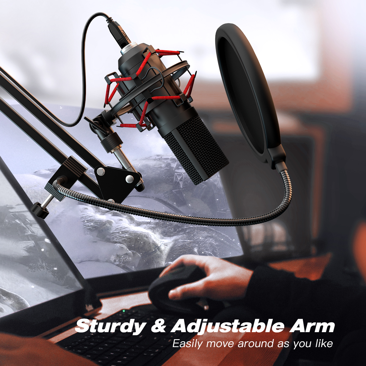 Setting up is a breeze. Just attach the adjustable arm, connect the mic to your computer, and start recording right away. No drivers, no sound cards, and no delays—simply plug in and go. It works seamlessly with most systems including Windows, Mac OS, PS4, PS5, and Linux, letting you focus on your content instead of technical details.