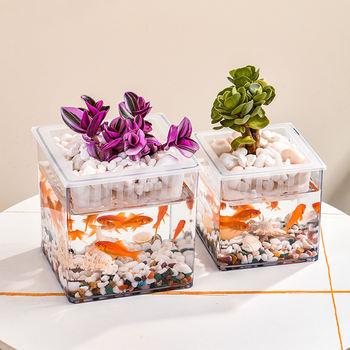 Desktop Aquarium Square Fish Bowl with Plant Holder – Eco-Friendly Mini Tank