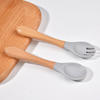 SoftGrip Silicone Baby Fork & Spoon Set with Wooden Handles