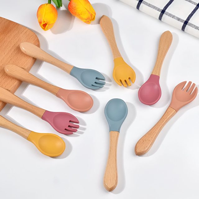 This utensil set is special because it combines comfort, safety, and style in one simple design. The soft silicone helps prevent mouth injuries, while the wooden handle gives your baby a natural, steady grip. It encourages healthy eating habits and builds confidence as your child learns to feed themselves.