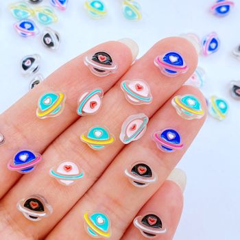 50pcs Mini Cartoon Planet Resin Cabochons for DIY Crafts & Kawaii Embellishments