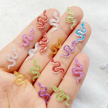 50Pcs Colorful Resin Snake Nail Charms – 3D Cartoon Rhinestone Decorations