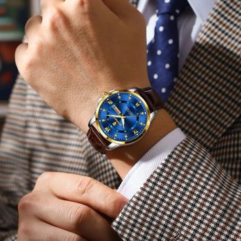 Luxury Sports Men’s Quartz Watch – Waterproof Luminous Date Week Leather Strap