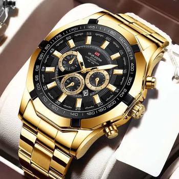 Luxury Men’s Gold Stainless Steel Quartz Watch – Waterproof Sports Calendar
