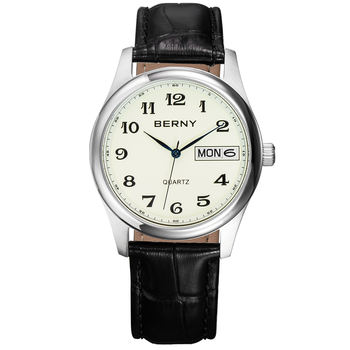 Men’s Classic Quartz Leather Watch with Day-Date Calendar
