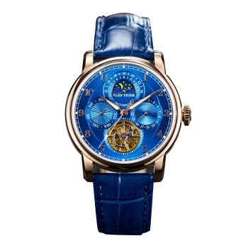 Luxury Rose Gold MoonPhase Automatic Watch with Blue Leather Strap