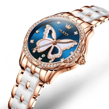 Luxury Rose Gold Butterfly Diamond Wristwatch – Waterproof & Luminous