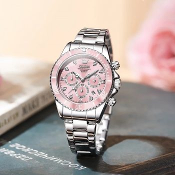 Women’s Luxury Quartz Watch with Zircon Accents & Luminous Chronograph