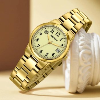 Golden Women’s Quartz Watch with Full Luminous Dial and Calendar